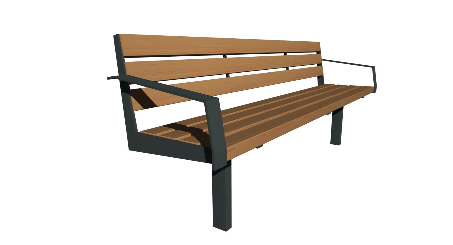 Trio típusú támlás, karfás köztéri ülőpad, tüzihorganyozott és RAL színre porfestett,